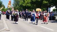 Nach dem superleckeren Mittagsmenü trafen sich die am Sonntag acht teilnehmenden Vereine auf dem Platz bei der Turnhalle Kriegstetten für den Festakt. Anschliessend ein kurzes Abkühlen an einem schattigen Plätzchen und schon waren wir dran mit unserer Parademusik. Verschönert wurde unser Auftritt optisch natürlich mit unseren Ehrendamen, welche verstärkt wurden durch Verena Meyer (Bucheggbergerin und Kantonsratspräsidentin).