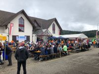 Wir hatten in der Halle full house, tolle Musik mit den Chüelibach-Musikanten und eine prächtige Tombola. Und draussen konnten wir uns auch an den vielen Gästen erfreuen, so dass im Bierzelt und auf dem Festplatz immer was los war. Ab und zu gab es wie bereits kurze Nieselregenepisoden - aber unser Publikum ist diesbezüglich alles andere als zimperlich. Was machen schon ein paar Tröpfchen Wasser? Die tun nicht weh... also kurz den Schirm öffnen, damit man gemütlich darunter das Essen im Trockenen verzehren konnte.
