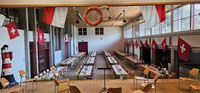 Mit rot-weiss gesetzten Segeln stechen wir in See.
